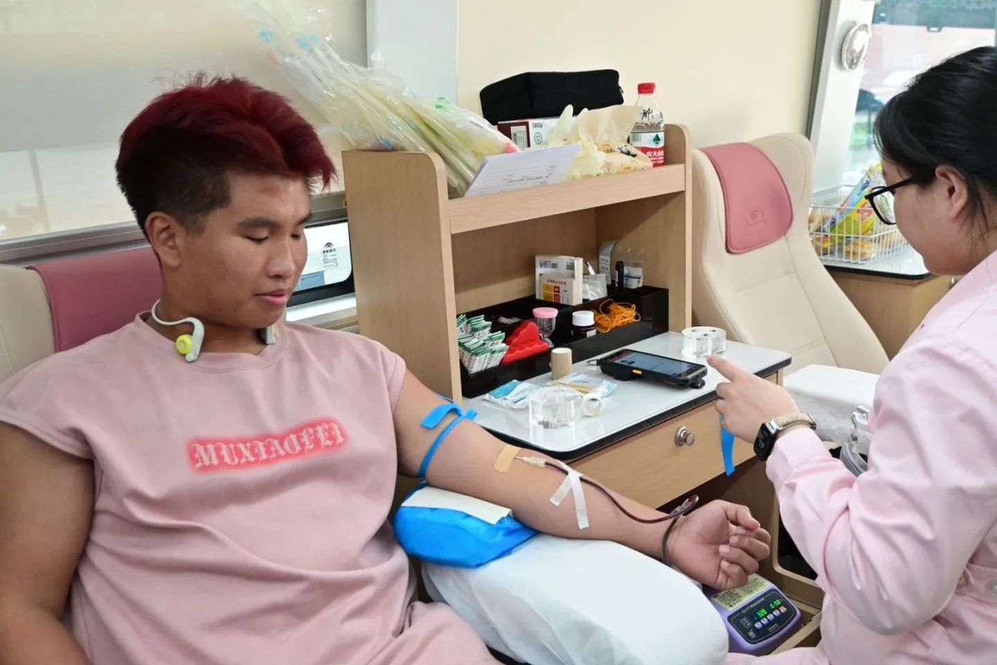 献血车内采血