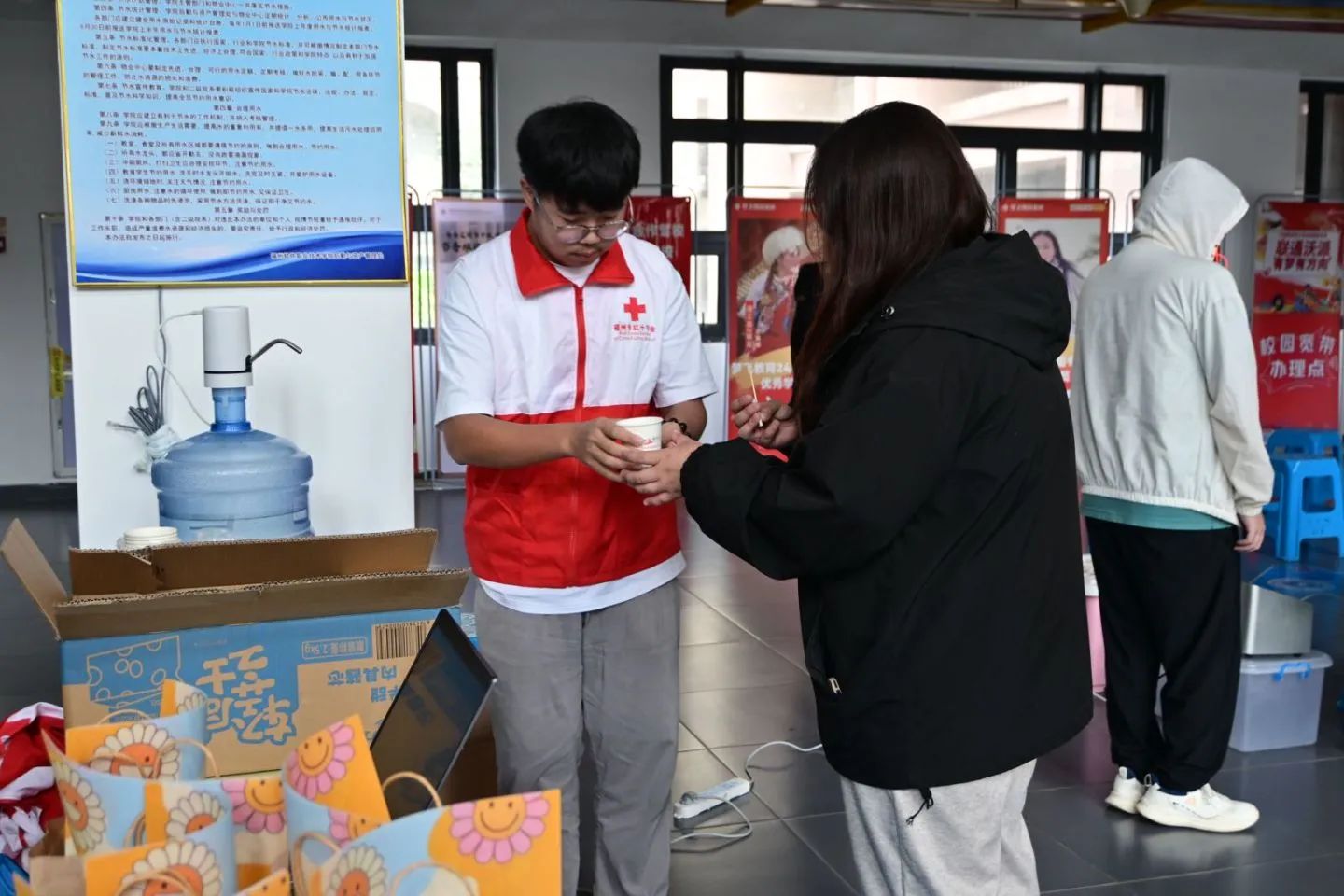 献血者献血后现场备有饮品、食品,供献血者在献血后补充体力,保障献血者健康。同时,志愿者会叮嘱献血者注意休息、保持良好的饮食习惯,并告知献血者后续的注意事项。