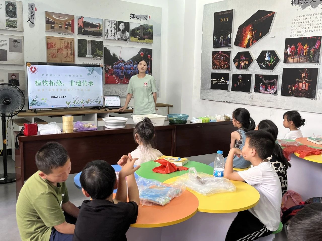 为激发青少年对传统文化的兴趣,促进非遗文化产业的创新与发展,增强青少年的环保意识,提升青少年的艺术鉴赏能力和动手能力。7月18日,数字金融产业学院薪火暑期社会实践服务队在屏南县双溪镇开展“锤草印花,敲染而至”植物拓染活动。