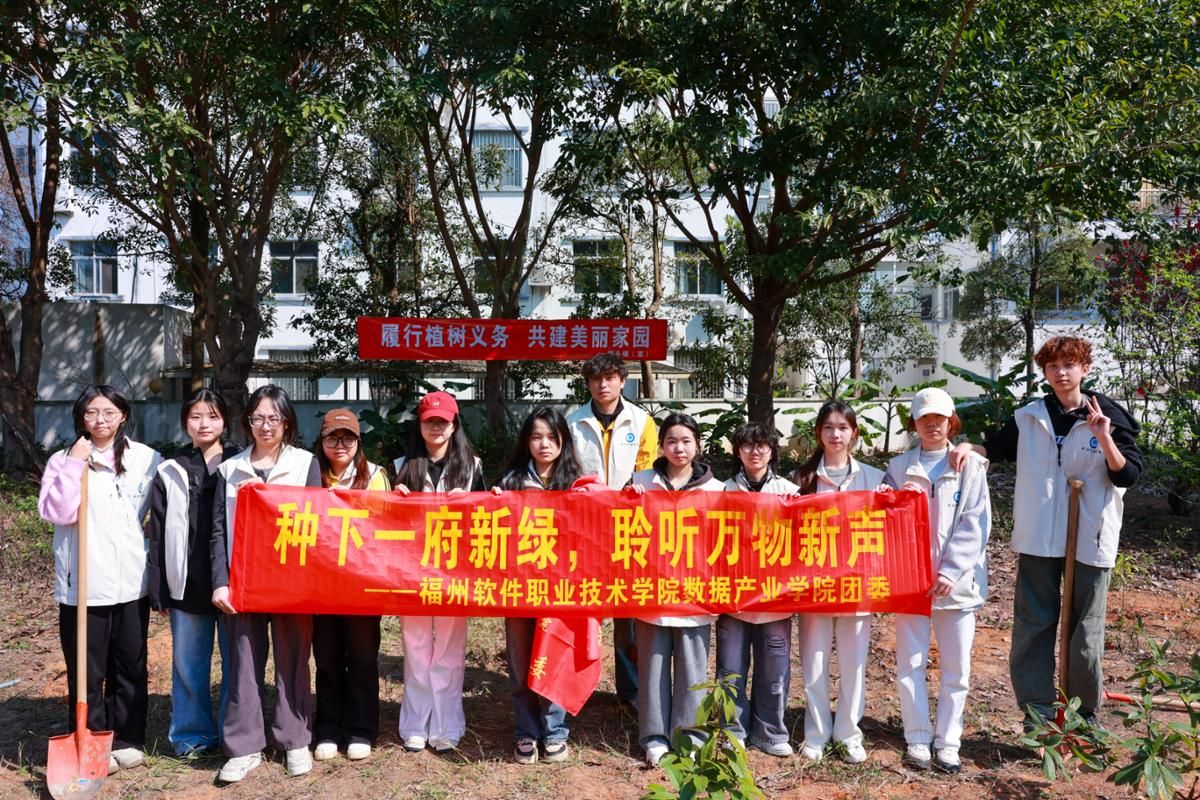 3月12日上午,福州软件职业技术学院数据产业学院的同学们走进长乐区潭头镇大宏村休闲公园,挥锹铲土、扶苗填坑,以一场热火朝天的植树活动,为美丽乡村增添新绿。