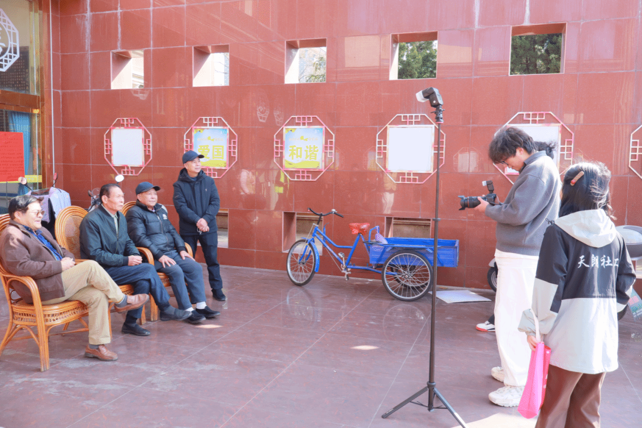 活动当天,志愿者们带着摄影设备来到百户村,在村干部的协助下布置起简易拍摄点位。面对镜头,不少老人起初略显拘谨,志愿者们主动上前与老人们拉家常、话温暖,用亲切的交谈舒缓紧张情绪。拍摄间隙,大家还贴心为老人们测量血压,耐心引导、细致操作,轻声叮嘱日常注意事项。在志愿者的陪伴与鼓励下,老人们渐渐放松下来,一张张慈祥温暖的笑脸被定格在画面之中。