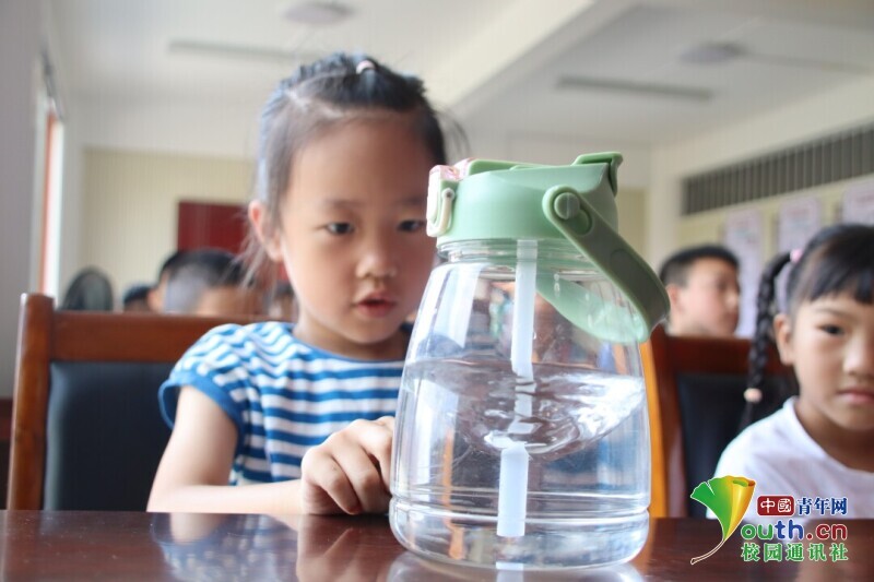 图为小朋友用水杯制作漩涡。胡陈龙 供图