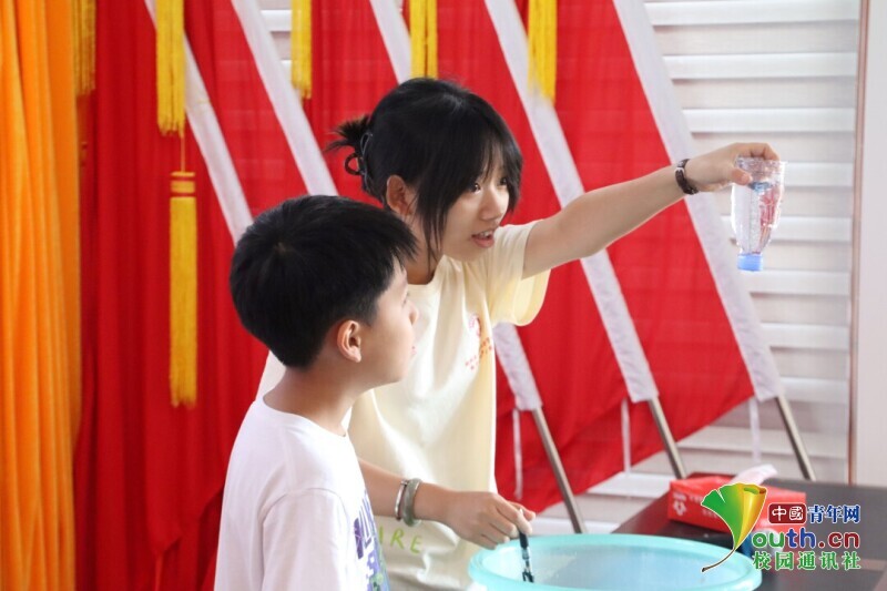 图为实践队员在指导孩子动手实操。李小阅 供图