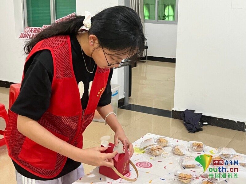 在漳港街道关湖边社区,师生们团结一致,和面、揉皮、包馅、压模、脱模……经过高温烘焙,一个个月饼新鲜出炉,师生们将月饼放入精美的礼盒,随后将承载着美好的祝福和温暖的月饼送到高龄老人和困难家庭手中,为他们送上节日的祝福和亲切的问候,他们的脸上洋溢着幸福的笑容。(通讯员 林宗增)