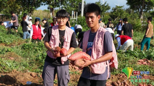 图为同学们在拾取地瓜地里刨出的地瓜。毛雨 供图