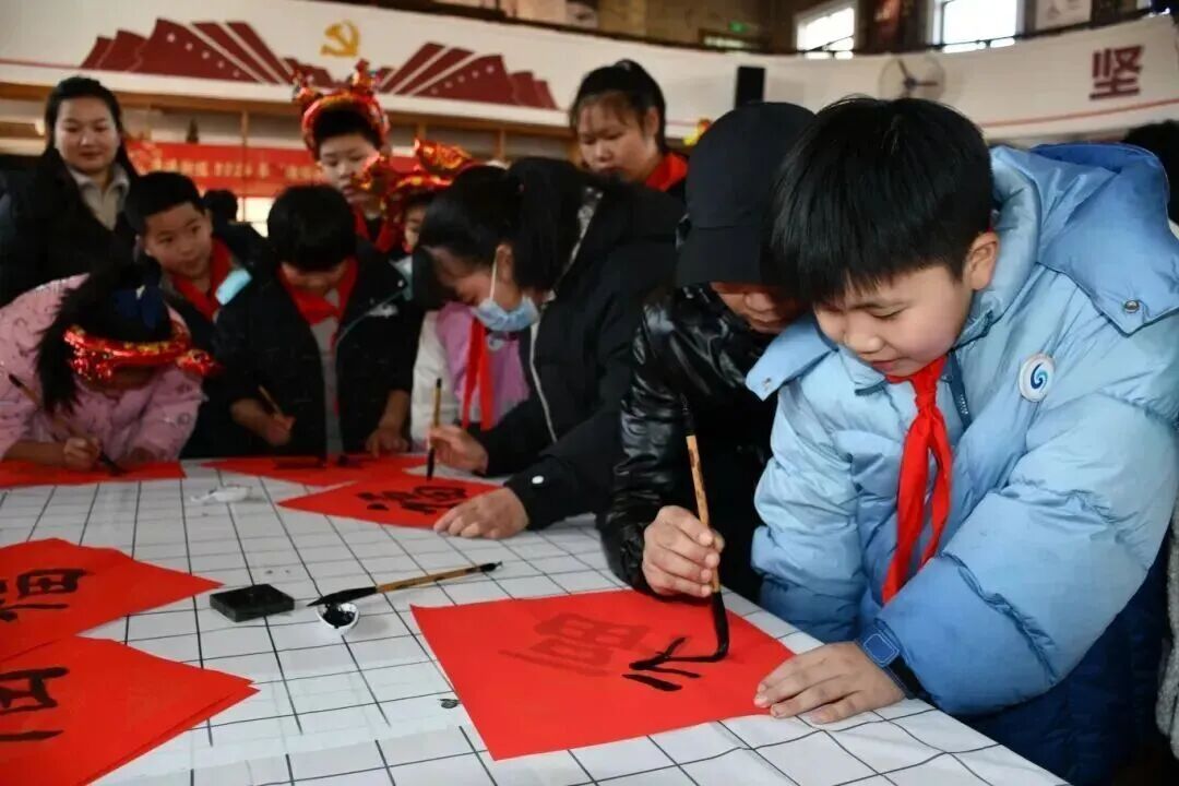 随后开展的“民俗手作工坊”和“传统游戏擂台”成为活动现场的热点。孩子们在家长陪伴下写春联、剪窗花、制灯笼,亲手体验传统手工艺的魅力;猜灯谜、踢毽子、团队协作书写“妙笔生花”等游戏环节,则让孩子们在欢笑中锻炼了动手能力、团队意识与身体协调性。