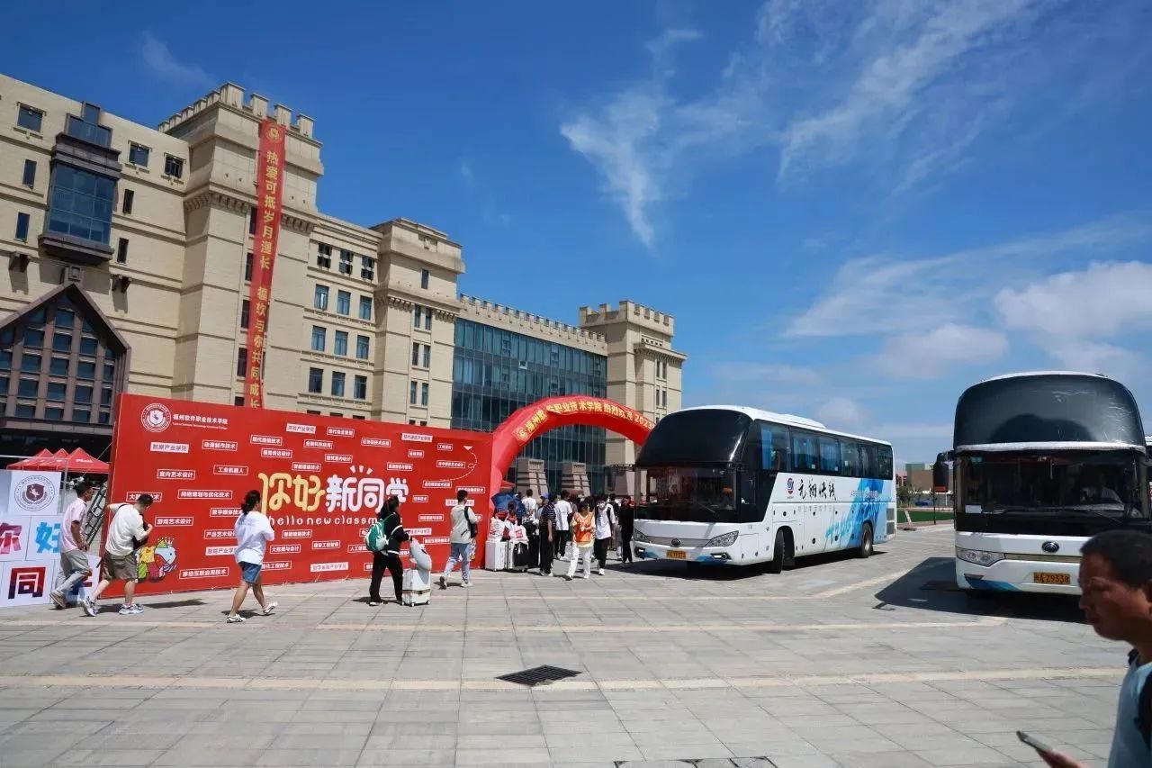 迎新车辆来往