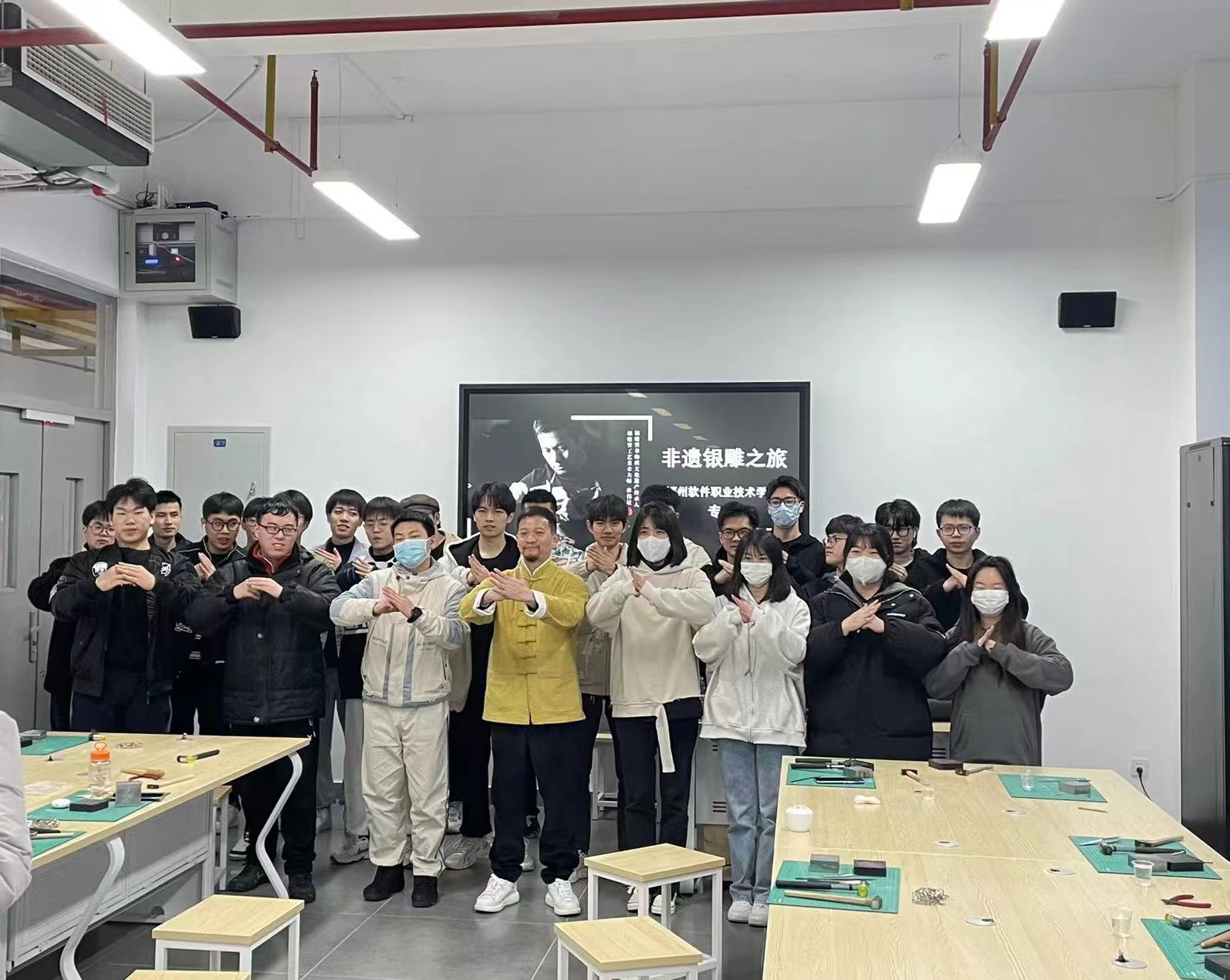 2022年3月7日上午,由主讲林伟星大师,助教王帅老师,游戏产业学院技能大师工作室成员教师郭抒婷、陈桑共同组织参与的非遗银雕师训课程在游戏产业学院正式开班。参与学生有20级产品艺术设计专业全体学生以及20级游戏设计专业编程方向、21级动漫设计与制作专业部分学生。