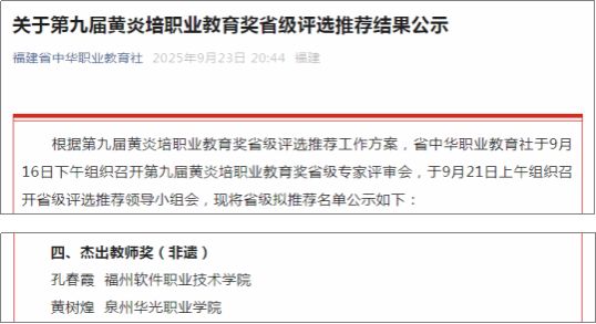 黄炎培职业教育奖是经中共中央、国务院专项审核通过的职业教育领域全国性专门奖项,本届杰出教师奖全国仅评选100名,其中含非遗代表性传承人教师10名。此次获评,既是对孔老师在职业教育领域深耕非遗教学成果的肯定,也是对皇冠即时比分_皇冠篮球投注-体育*直播:“非遗+美育”职业教育模式的认可。