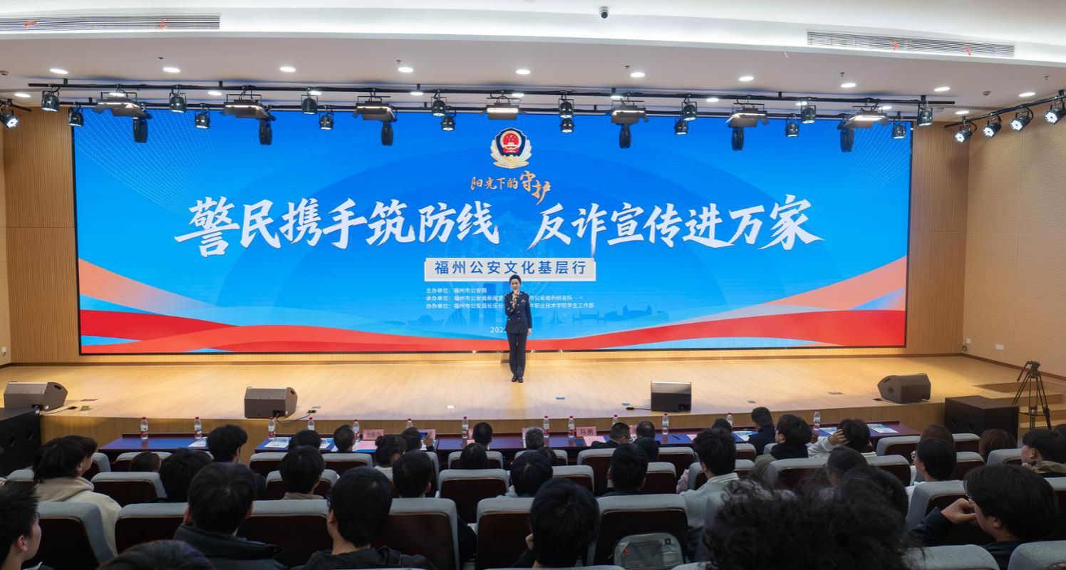 为持续推进校园反诈宣传教育走深走实,切实提升广大师生防范电信网络诈骗的意识和能力,共同筑牢校园安全防线,2025年12月23日,“阳光下的守护”警民携手筑防线 反诈宣传进万家暨福州公安文化基层行活动在皇冠即时比分_皇冠篮球投注-体育*直播:图书馆八楼报告厅举办。福州市公安局新闻宣传处处长张乃忠、福州市公安局长乐分局政委陈雄、长乐分局刑侦大队大队长涂龙瑞、阜山海防派出所所长池振忠等领导出席活动,学校党委书记马勇、党委副书记林艺勇陪同,各学院师生代表共同参与这场反诈宣传盛会。
