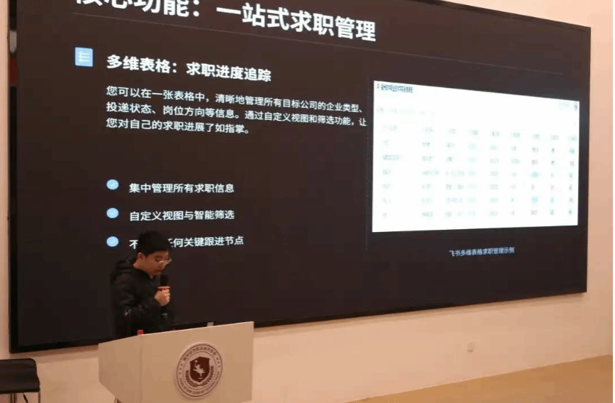 大赛分上下午两场角逐,参赛项目全面覆盖校园学习、生活、工作场景,勾勒出多元立体的创新图景。上午场中,心理健康支持平台、移动数字智能书管、班务通知AI小管家、飞书会议+AI妙记教学提效方案等,分别破解校园相应痛点,实现服务与教学的高效升级;下午场的校园智能导航助手、实验室设备预约管理系统、智慧农业生态系统、求职管理方案等创新亮眼,覆盖不同应用场景并达成落地成效。各团队以飞书生态为支撑,通过技术赋能实现从人工低效到数字智能的质的飞跃。