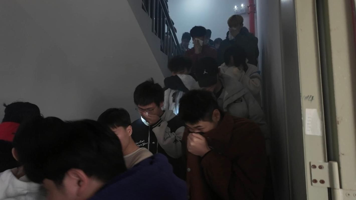 本次演练设火情触发、应急疏散搜救、协同灭火、急救实操、灭火技能培训五大环节。13时,3号宿舍楼5层514房间采用真火触发模拟火情,烟雾弹作为辅助增加浓烟,烟雾触发烟感探测器,警报响起后,消防控制室迅速启动应急预案,微型消防站各小组即刻到位:灭火组开展初期“火情”扑救;疏散组引导师生持湿毛巾捂口鼻、低姿沿墙壁快速疏散;警戒组保护警戒封闭起火楼栋;通讯组保障现场实时情况汇报和信息传输;救援组继续深入楼栋各层继续排查搜救人员。经过微型消防站人员的疏导,全体师生仅用3分钟便安全疏散至指定区域,各个环节安全有序。