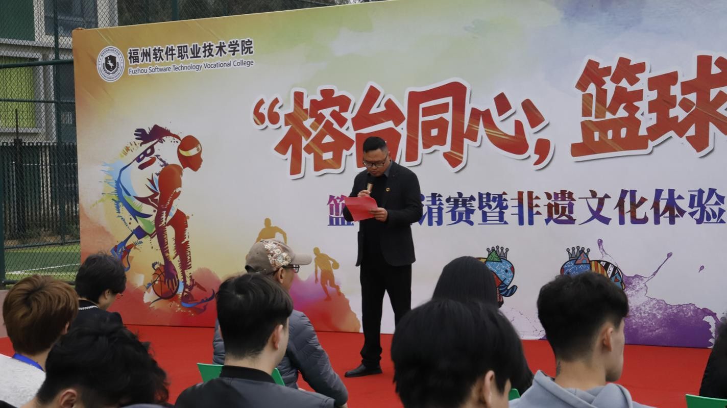 ? 校领导致辞:福州软件职业技术学院校长助理柯建琳发表致辞,代表学校对台湾学子及各位嘉宾的到来表示热烈欢迎。他指出,篮球运动是青春与活力的象征,本次活动为两岸青年搭建了相互学习、相互交流的平台,希望通过赛事和非遗文化体验,增进两岸青年的了解与友谊,并预祝活动和赛事取得圆满成功。