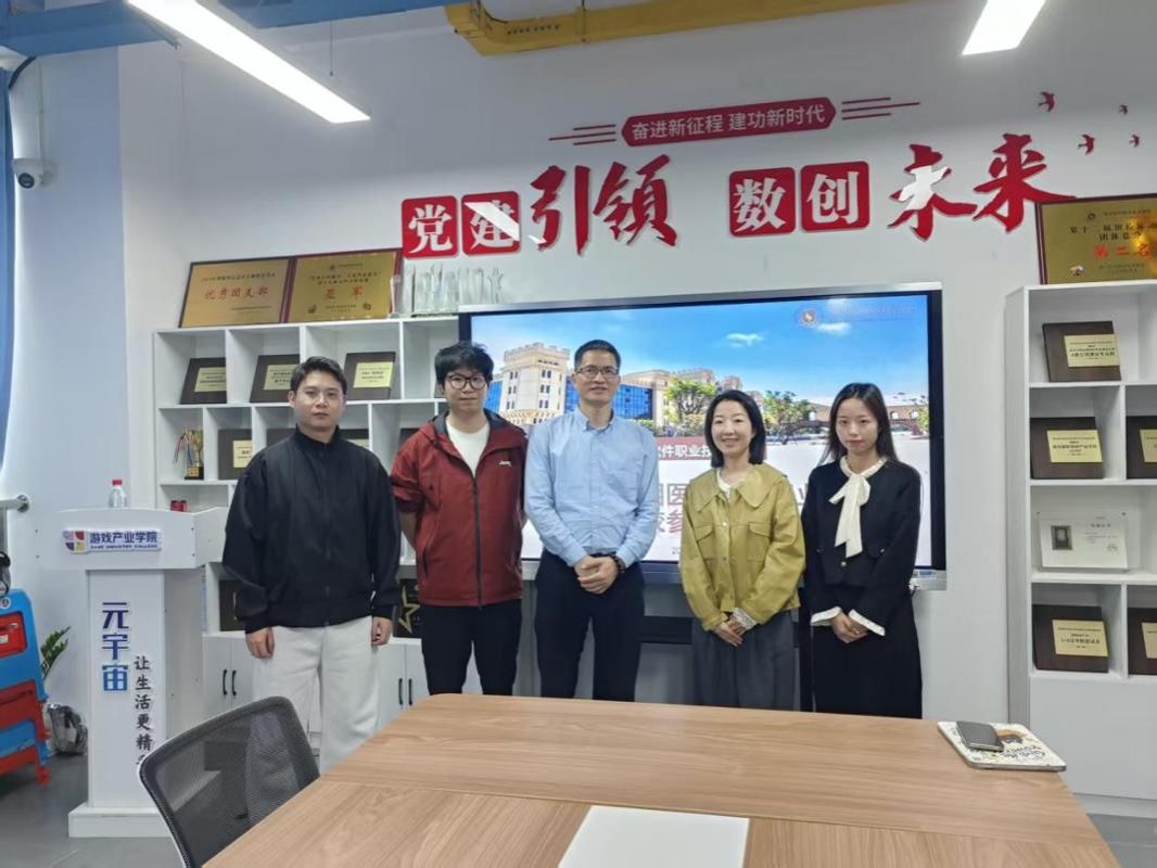 2026年3月25日,三明医学科技职业学院电竞学科带头人薛俊林教授、电竞专任教师江晓晖、陈昕一行来访皇冠即时比分_皇冠篮球投注-体育*直播:参观交流。皇冠即时比分_皇冠篮球投注-体育*直播:游戏产业学院副院长李密、电竞教研室主任李诗琦及专业教师热情接待,双方围绕电竞专业建设、行业发展、教育资源等议题展开交流。