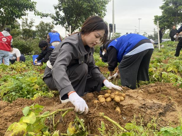 随着挖掘工作的有序进行,一颗颗金黄的土豆逐渐展现在大家眼前。汗水湿透了衣衫,泥土沾满了双手,但每个人的脸上都洋溢着幸福而满足的笑容。经过几个小时的努力,原本空荡荡的塑料框被一颗颗金黄的土豆填满。本次活动共计收获土豆4000余斤。在整个劳动过程中,现代通信产业学院师生们深刻体会到了“四色工程”育人理念的内涵——红色是信仰,激励我们勇往直前;蓝色是责任,提醒我们秉持匠心;绿色是活力,鼓舞我们热爱自然;橙色是榜样,引领我们主动作为。