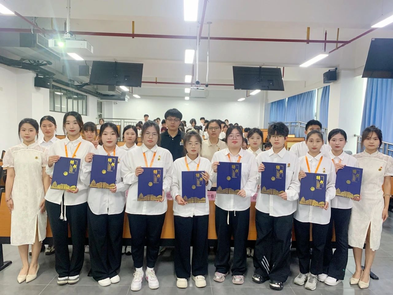 与会的各位领导老师为上一届团学干部颁发聘书,各团学干部依次进场接过任职聘书并合影留念。学院各团学组织坚持在继承中发展,在创新中前行,立足于服务同学、促进校园和谐发展的宗旨,为学院发展贡献力量。