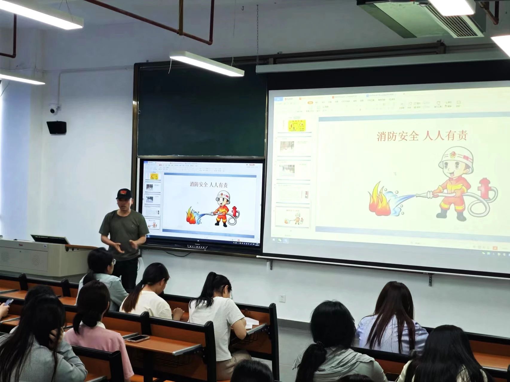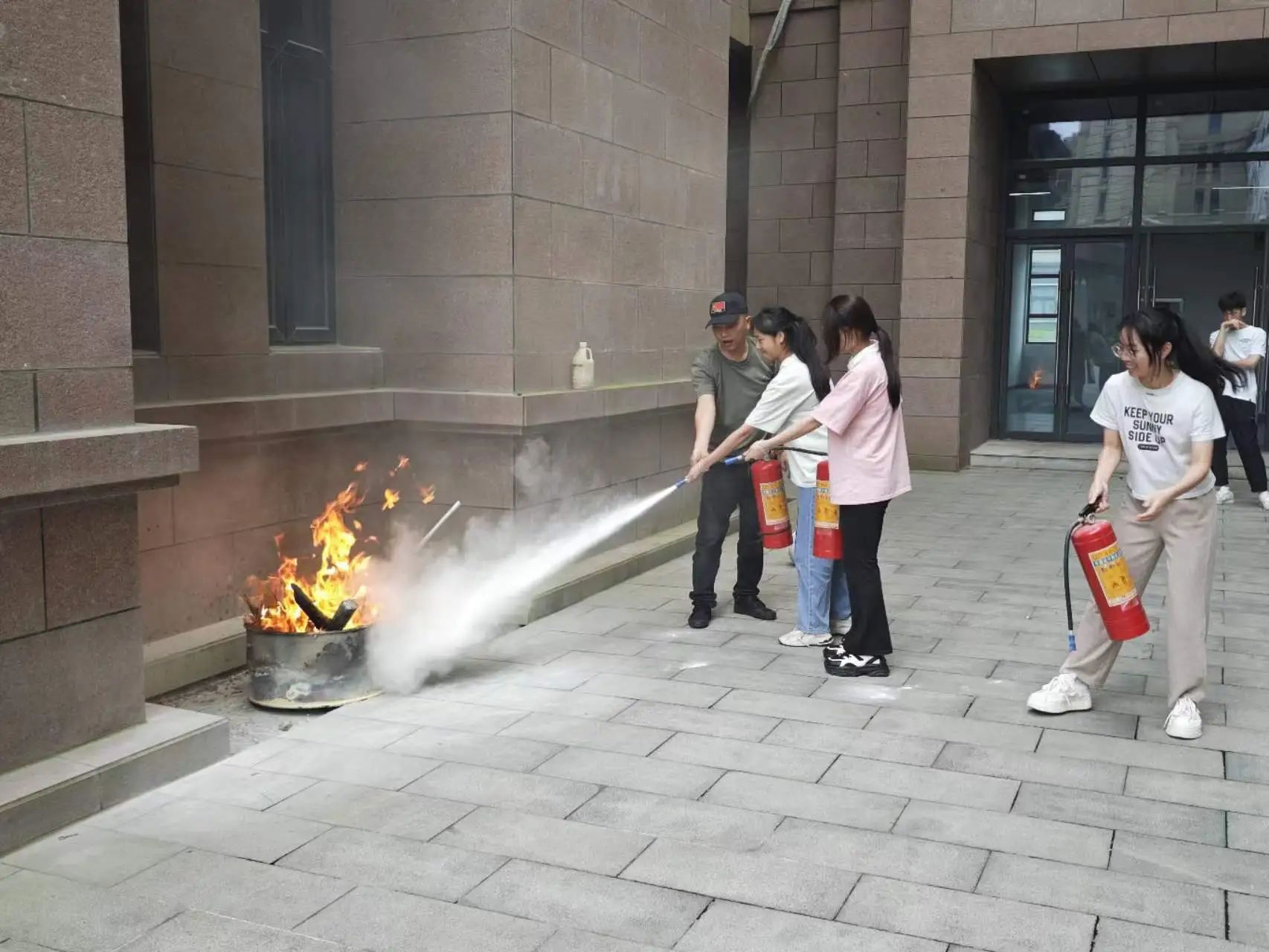 讲解员围绕“人人讲安全、个个会应急”的消防演练要求,在演练实战中提升学生发现隐患本领、不断增强演练实效性,向同学们分析不同消防隐患的成因和发展过程,模拟不同场景下灭火方法技巧和逃生本领。演练现场对干粉灭火器、消防栓的使用方法进行现场示范,使同学们了解火灾风险隐患,做到会报告火警、会使用灭火器材、会扑灭初起火灾、会组织疏散逃生,切实增强自身应对突发火灾时的应急处置能力。