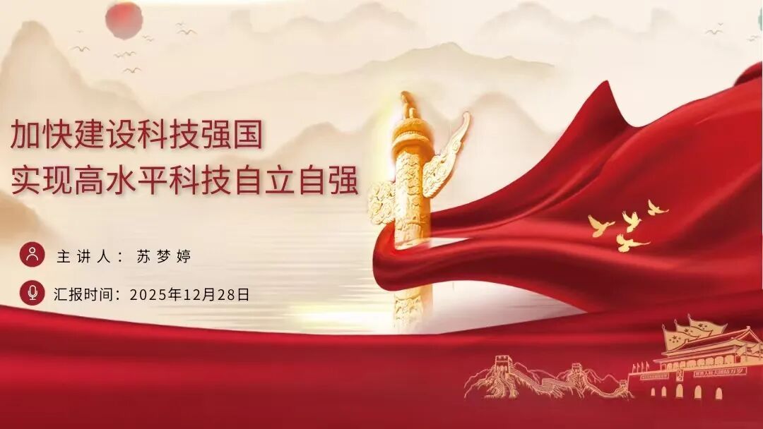 随后,苏梦婷同志分享,面对外部压力与技术壁垒等挑战,破局之道在于将“手中有技、发展不慌”的真理落到实处。她呼吁,必须坚守自主创新阵地,依托“强基固本、决胜前沿”战略,建好高水平科创平台,做强关键领域“创新芯片”;同时深化科技体制机制改革,让创新体系既固自立自强之本,又强开放协同之效。唯有将科技发展的主动权牢牢攥在掌心,方能托举这强国伟业,行稳致远。