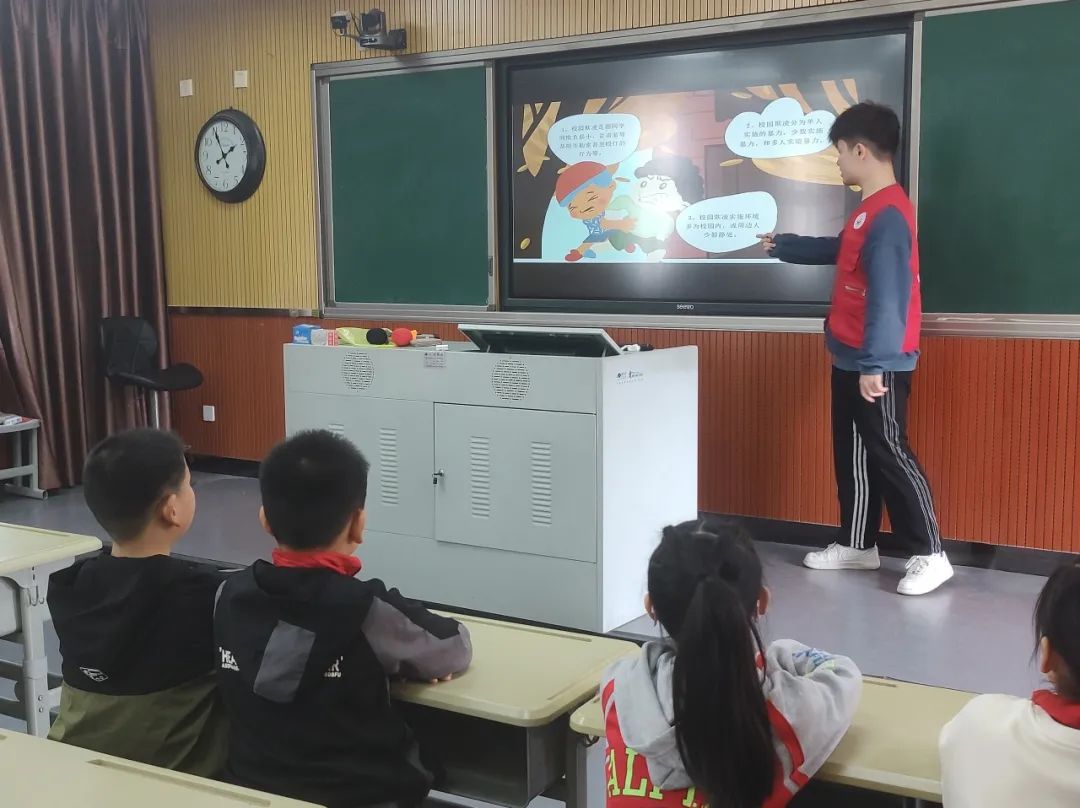 活动开始,入党积极分子向同学们进行了自我介绍。紧接着,他们向同学们详细讲解了预防校园欺凌相关的诸多事宜。在此过程中,入党积极分子不仅深入阐释了校园欺凌的危害,还传授给同学们应对欺凌的方法,教导大家如何勇敢地对欺凌行为说“不”。通过他们的讲解,同学们对预防校园欺凌有了更深刻的认识,也增强了自我保护的意识和能力。