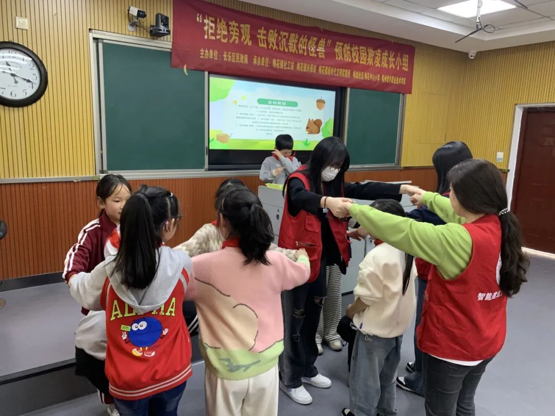 为深入巩固主题教育,夯实思想根基,构建平安和谐校园,预防校园欺凌事件发生,增强学生法治意识,提高自我保护能力,引导学生树立正确的法律意识。2024年4月12日,智能建造产业学院学生党支部联合梅花镇社工站前往梅花中心小学开展反校园欺凌主题宣讲活动。