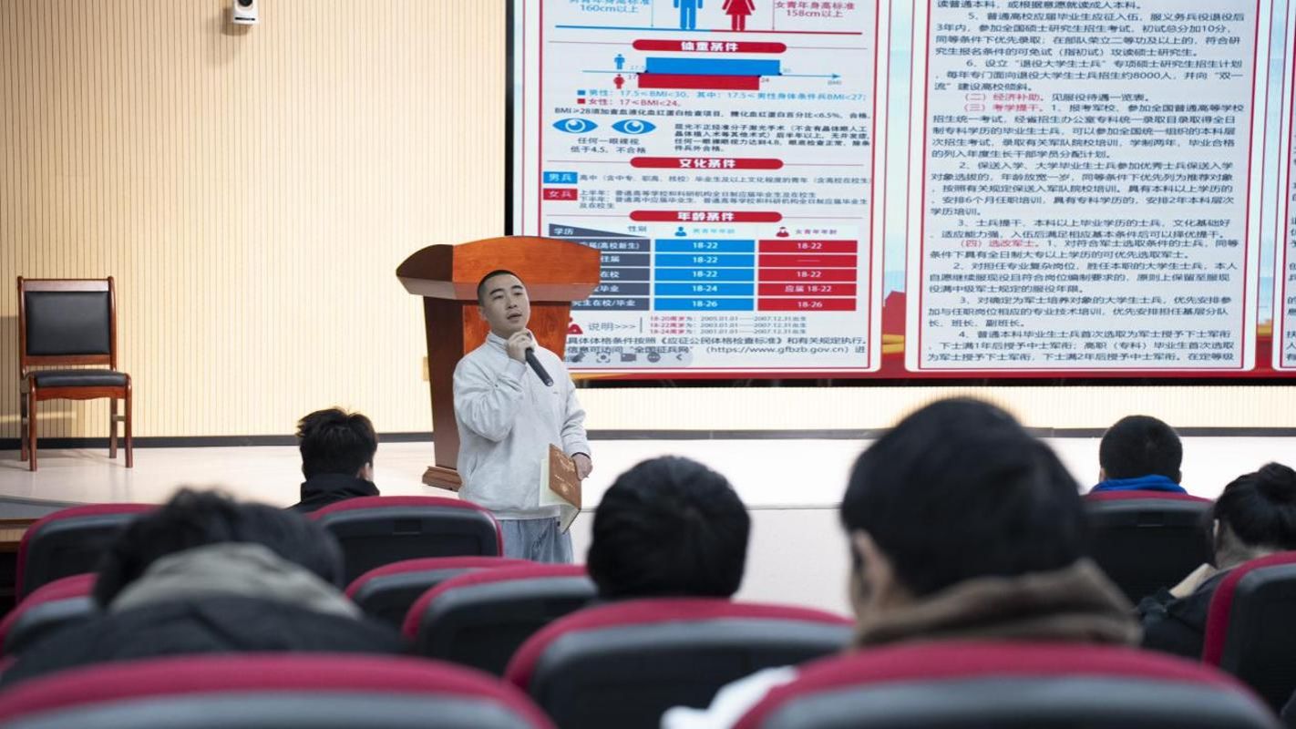 随后,退役大学生代表依次上台分享军旅生涯。他们讲述了从青涩学子蜕变为铁血军人的蜕变历程,分享了军营里的训练日常、战友情谊与成长感悟。从严格的队列训练到紧张的实战演练,从驻守岗位的坚守到执行任务的担当,一个个鲜活的故事、一幕幕热血的场景,深深感染了在场每一位同学。互动环节中,同学们积极提问,退役大学生耐心解答,现场气氛热烈高涨。