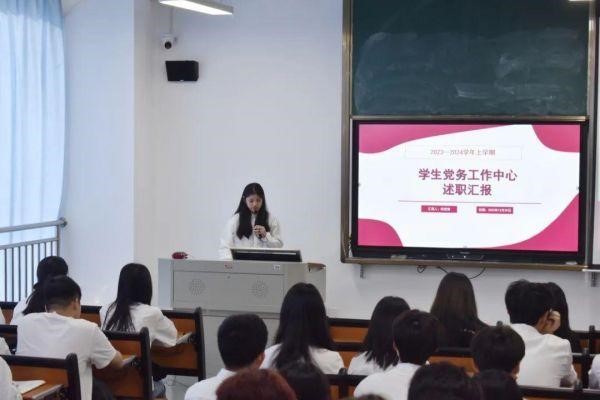 “一转眼,秋去冬来,不知不觉中我们走完了半个学年。”主持人宣布 2023-2024学年第一学期数据产业学院团委学生组织述职大会正式开始。