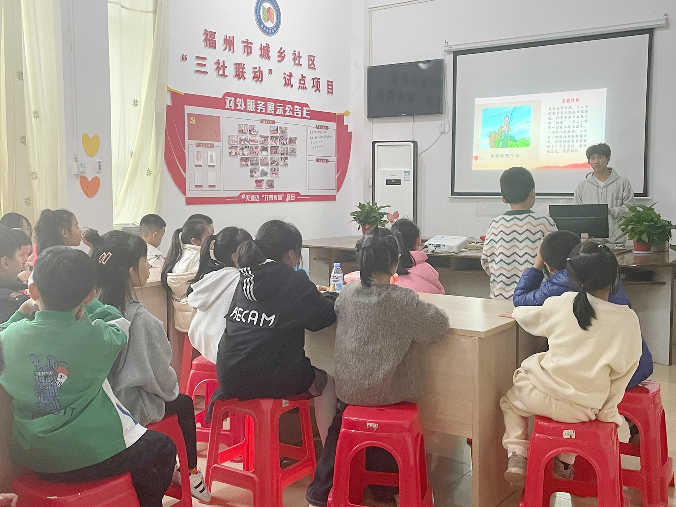 青年马克思主义学习研究社成员黄泽宇通过和小朋友们交流互动的形式,从爱祖国的河山、人民和文化三个方面倡导小朋友要以实际行动爱国、爱党、爱家,与小朋友们共同分享自己所知道的爱国故事形成强烈的爱国主义情感,并以此来缅怀革命先辈的丰功伟绩。