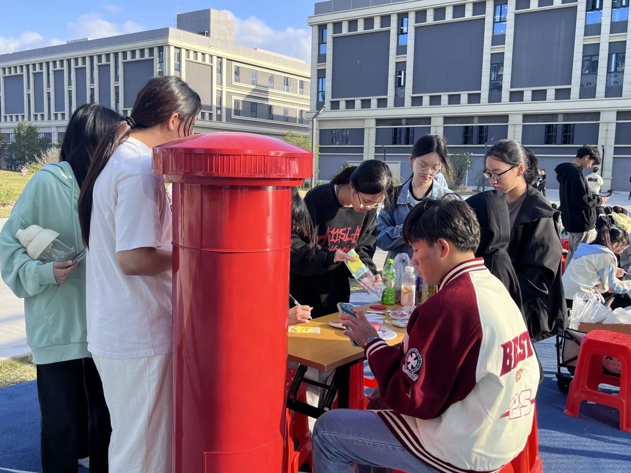 在篮球场旁边,一场特别的心灵洗礼悄然展开。在这里,有一个神奇的 “垃圾箱” 和一个充满希望的 “信箱”。同学们纷纷将过去的烦恼毫不犹豫地投进 “垃圾箱”,就像放下了沉重的包袱,那些曾经困扰自己的事情,随着纸张的飘落而渐渐远去。同时,大家也把对未来的展望轻轻地投进 “信箱”,每一份憧憬都像是一颗希望的种子,被小心翼翼地寄存起来。