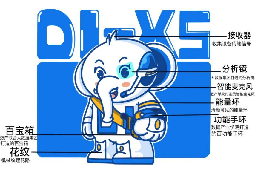 吉祥物选取校徽上大象作为原型,邀请国际知名流行艺术家--罗梅洛·布里托,用糅合涂鸦和流行元素的艺术风格,赋予大象绚烂色彩、充满想象力的造型元素,给人以强烈的幸福感和希望,传递积极乐观的气息。