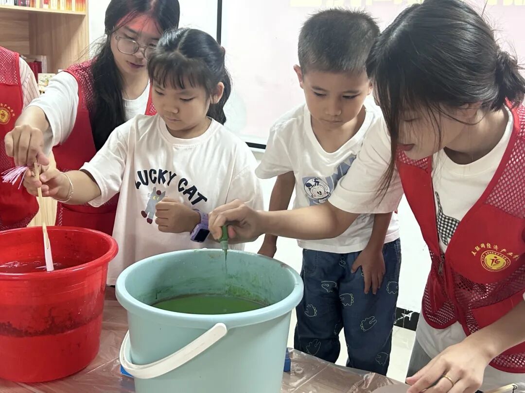 随后,志愿者化身传统文化的传播者,手把手教小朋友们绘制漆扇,助其将古典美学融入创作;还带领大家组装色彩明艳的红色风车,同步讲解风车转动原理,让小朋友在动手过程中体悟匠心、感受传统乐趣,使劳动精神与节日温情在沉浸式体验中延续,为双节增添传承意趣。