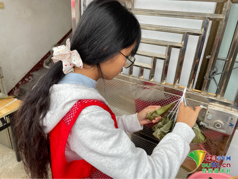 图为志愿者将粽子捆绑好。施雯颖 供图