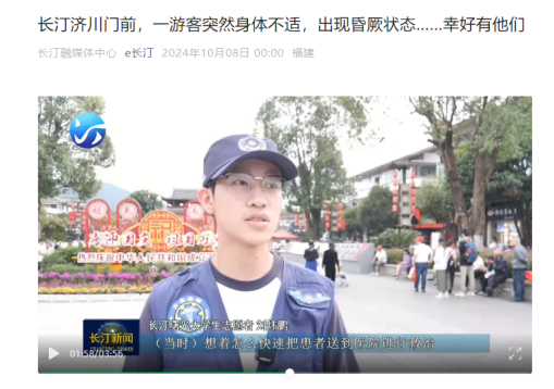 10月4日20时50分,长汀济川门前,一游客突然身体不适,出现昏厥状态。此时皇冠即时比分_皇冠篮球投注-体育*直播:大一新生刘炜鹏作为曙光救援队的志愿者,正在此处执行任务,保障景区安全高效有序通行。执勤的民警在发现这位游客身体不适时,便呼叫曙光救援队的队员协助处理,刘炜鹏和救援队队长接到消息的同时果断行动,一边联系医院,一边安抚家属,争分夺秒,以最快速度将游客送往汀州医院进行治疗。到医院后,又坚持做好后续工作,向医生交代情况,继续稳定情况,确保一切稳定,才返回景区执勤。