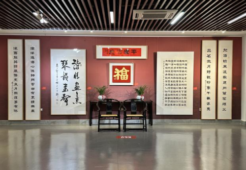 最后,饮水思源寒假社会实践服务队来到了陈吉书法艺术作品展。此次展览主题为“福语吉言”,字面意义为祝福语与吉祥话。然而,其内涵更深一层:“吉”字代表陈吉本人,他既是书法家,又是福文化研究专家。因此,书写“福”字并传递祝福,既是他的本职工作,也是他应当承担的责任。展览不仅展示了陈吉先生近年来创作的书法佳作,还呈现了一系列他与陶瓷、建盏、紫砂壶、剪纸、茶艺、石雕等非物质文化遗产项目的跨界融合文创产品。这些产品的创新思维和精美制作令人眼前一亮。