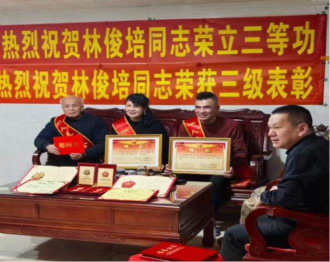 林俊培于2021年9月积极响应国家号召,参军入伍,现服役于泉州武警某支队。自入伍以来,他始终以“严于律己、奋勇争先”的信念扎根军营。他勤学苦练军事技能,锤炼出坚韧不拔的意志;立足本职岗位,主动承担急难险重任务,先后获评“优秀学兵”“抗台风先进个人”等称号。2024年12月,他因表现突出荣立个人三等功;仅隔一个月,又以过硬的综合素质和卓越的工作实绩,再获“军事训练先进个人”及三级表彰,实现了从“精兵”到“标兵”的跨越式成长。