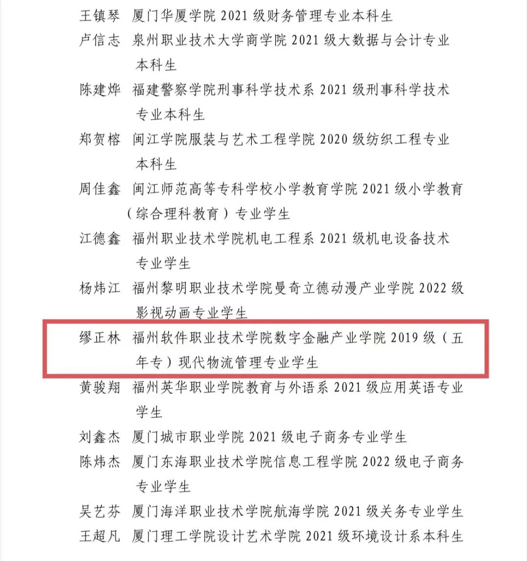 近日,团省委通报表扬在2023年福建省大中专学生志愿者暑期“三下乡”社会实践系列活动中表现突出的集体和个人。其中,数字金融产业学院陈雨芯老师荣获“2023年福建省‘三下乡’社会实践先进工作者”,2019级(五年专)现代物流管理专业缪正林同学荣获“2023年福建省‘三下乡’社会实践先进个人”。