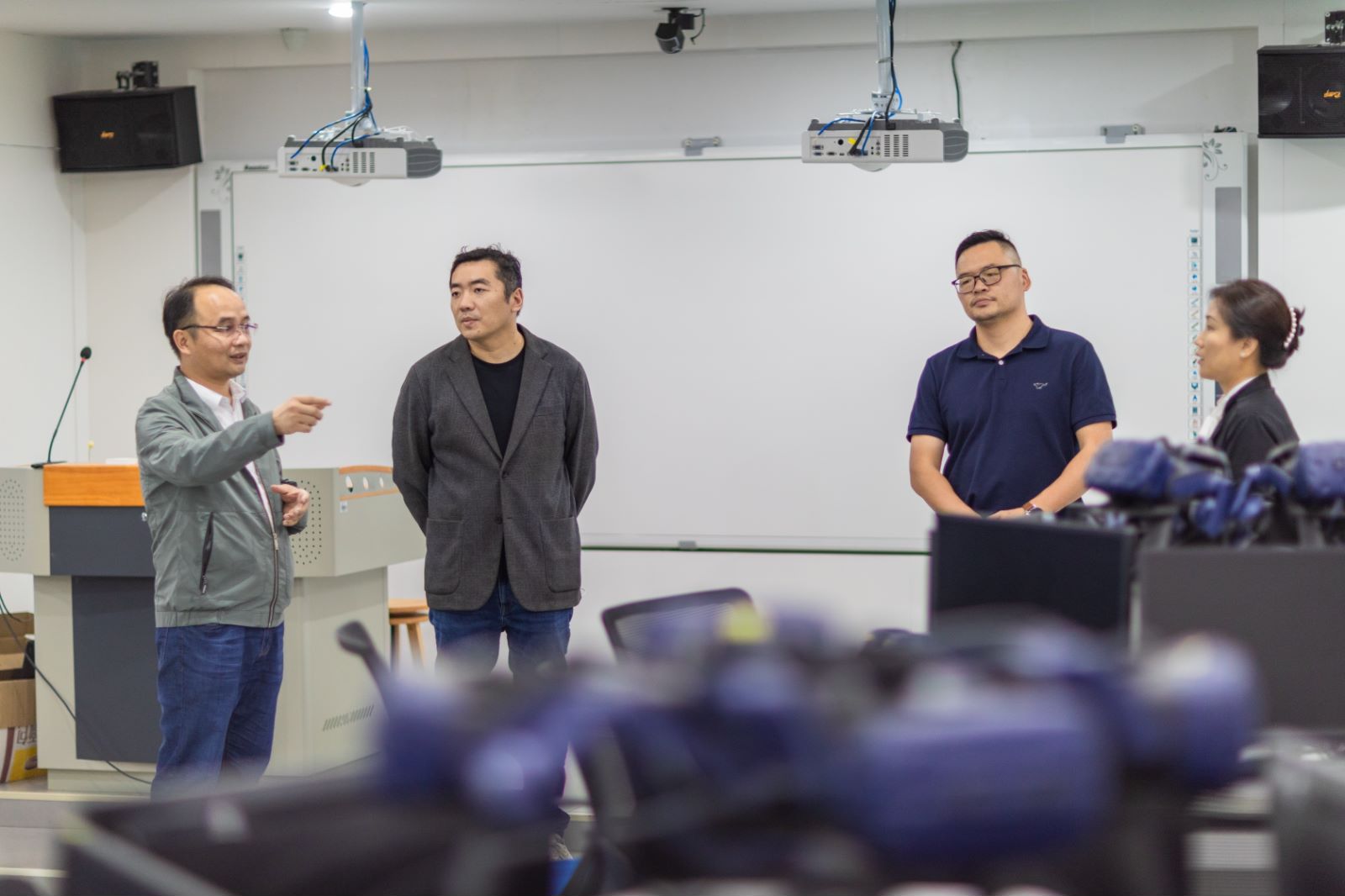 (△参观学校智慧教室)