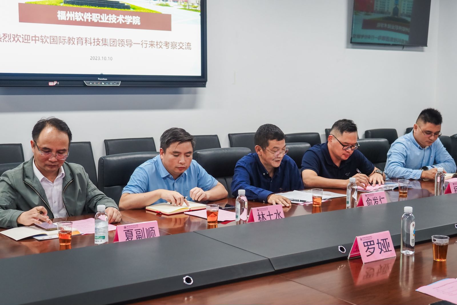 10月10日,中软国际教育科技集团CEO田晓杉、中软国际教育科技集团副总裁罗娅、中软国际教育科技集团产学业务线区域总监陈文秋到访数字教育小镇,学校执行校长俞发仁,副校长林土水,校长助理柯建琳,职业培训处处长夏副顺,招生就业处处长黄巍炜等相关领导出席本次活动。