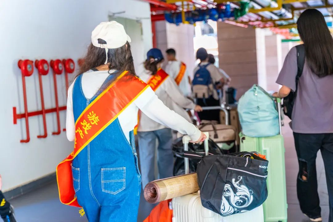 统筹部署,充分准备,殷殷关怀,情暖心田,每栋宿舍楼下都有志愿者在等候。