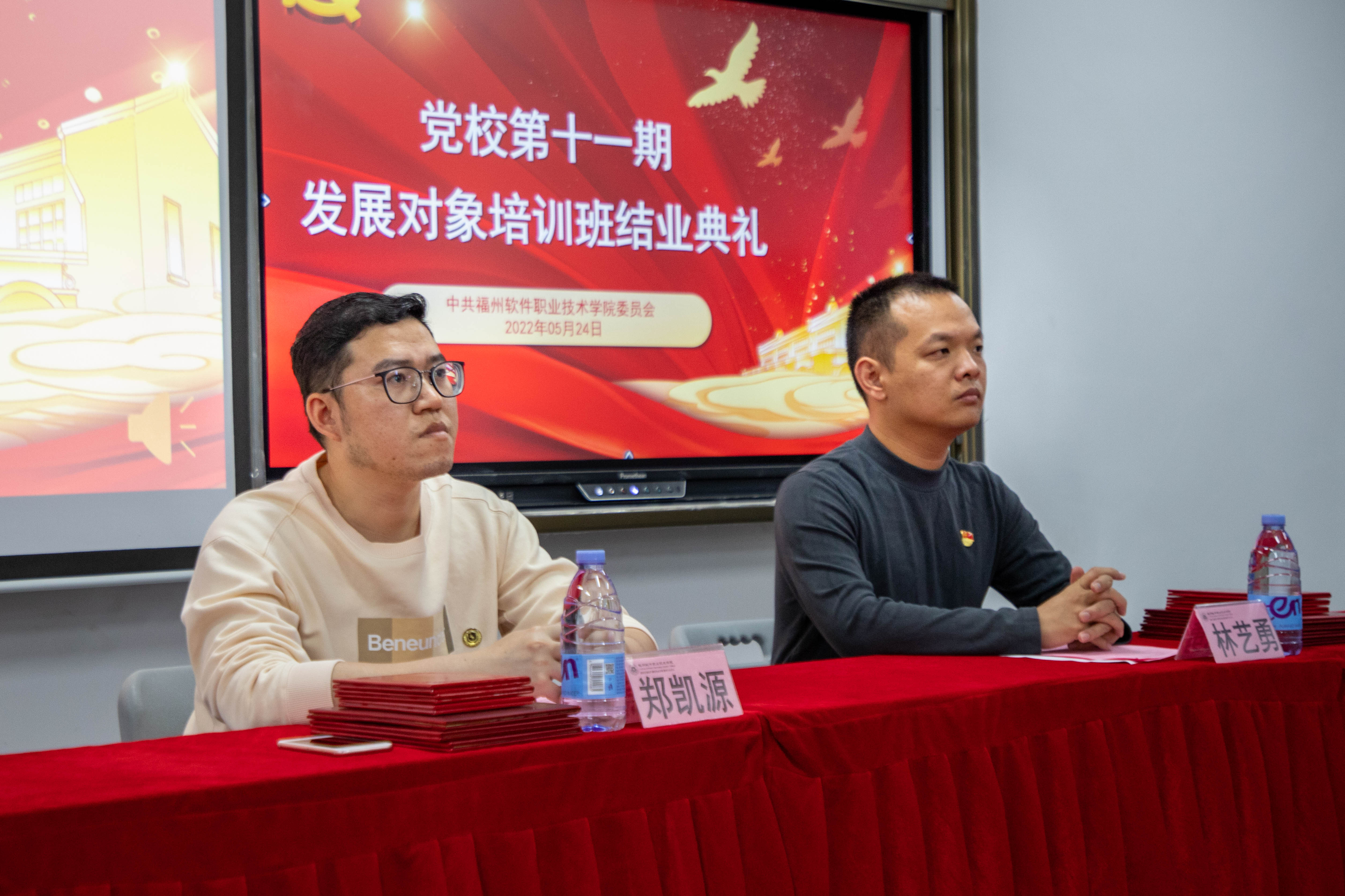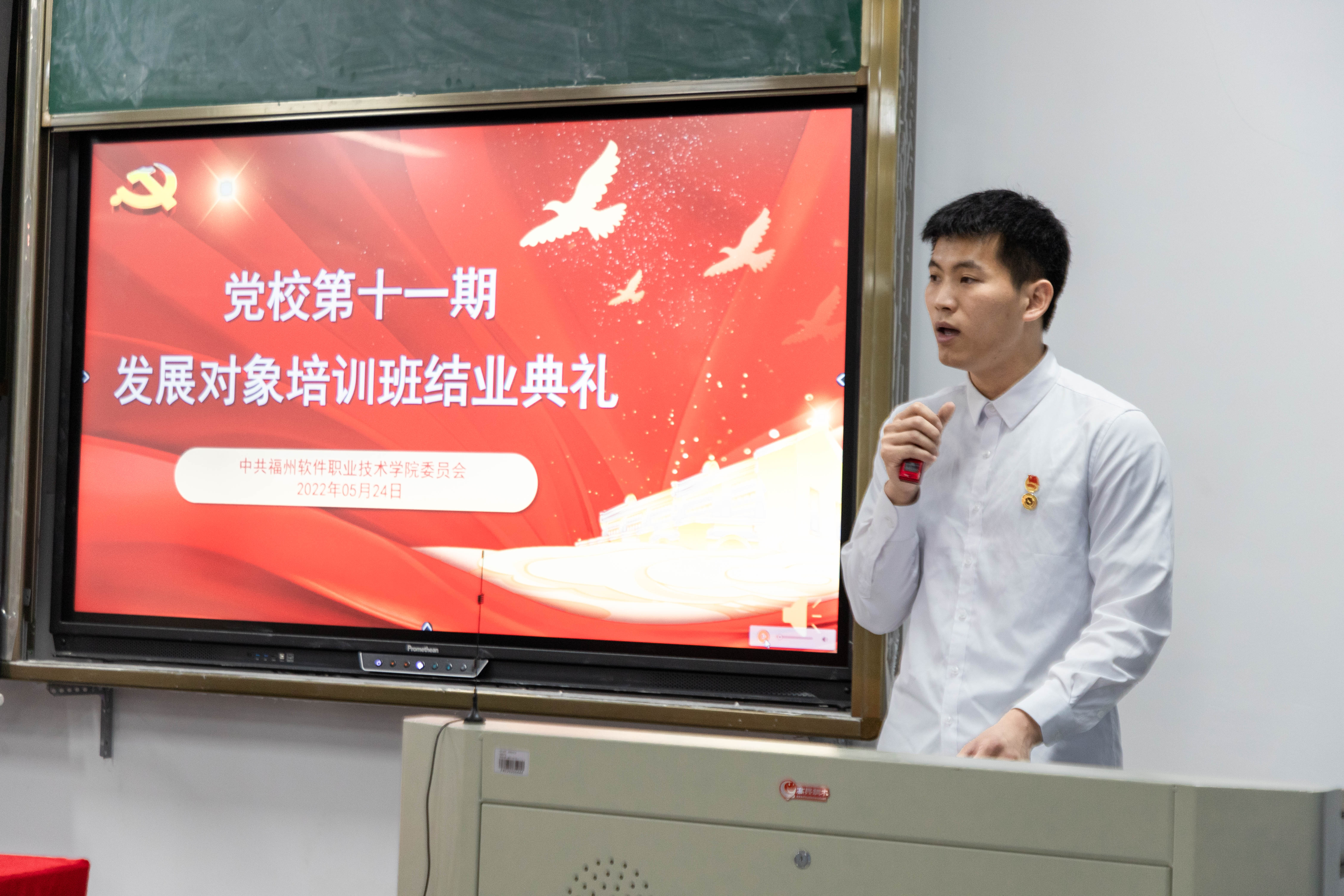 5月24日14:30,学校党校第十一期发展对象培训班结业典礼在教学楼D302举行。学校党委副书记林艺勇、党委工作部(宣传部)部长郑凯源、各党总支副书记、学生党支部书记及本次培训班全体学员参加典礼。结业典礼由党委工作部(宣传部)副部长陈燕峰主持。