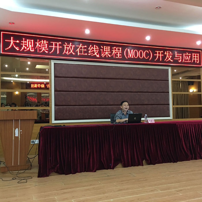 11月1日,我院邀请了原福建省教育评估中心主任,现福建省教育厅高等教育处林素川处长为我院教职工开展了“大规模开放在线课程开发与应用”讲座。林处长从MOOC的概念、课程演变、课程形态比较等方面切入,深入浅出,为大家讲解了MOOC的发展过程。同时还从选课方式、课程资源建设等方面,对MOOC课程的开发和应用提出了独到的见解。林处长的讲座对我院在线课程的开发和应用具有较好的指导意义,赢得了老师们阵阵热烈的掌声。