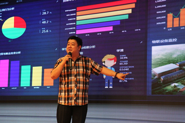 报告会上,任院长就智慧校园顶层设计的理念、方法和实践做了足足3个多小时的仔细分享,为与会人员诠释了以大数据技术为核心的教学管理平台、教辅平台和生活平台等。其中许多应用案例令现场的教育工作者们感到新奇,发现原来技术还可以这么用。一位与会老师这样说道:“首先是特别有感觉,而且特别震撼。我感觉就好像进入了一个虚拟王国,就跟玩帝国似的,特别有感觉。第二个是我们建立了整体的智慧教育生态环境,与单纯的IT公司的区别在于我们是真正在做教育,这让我特别触动。”