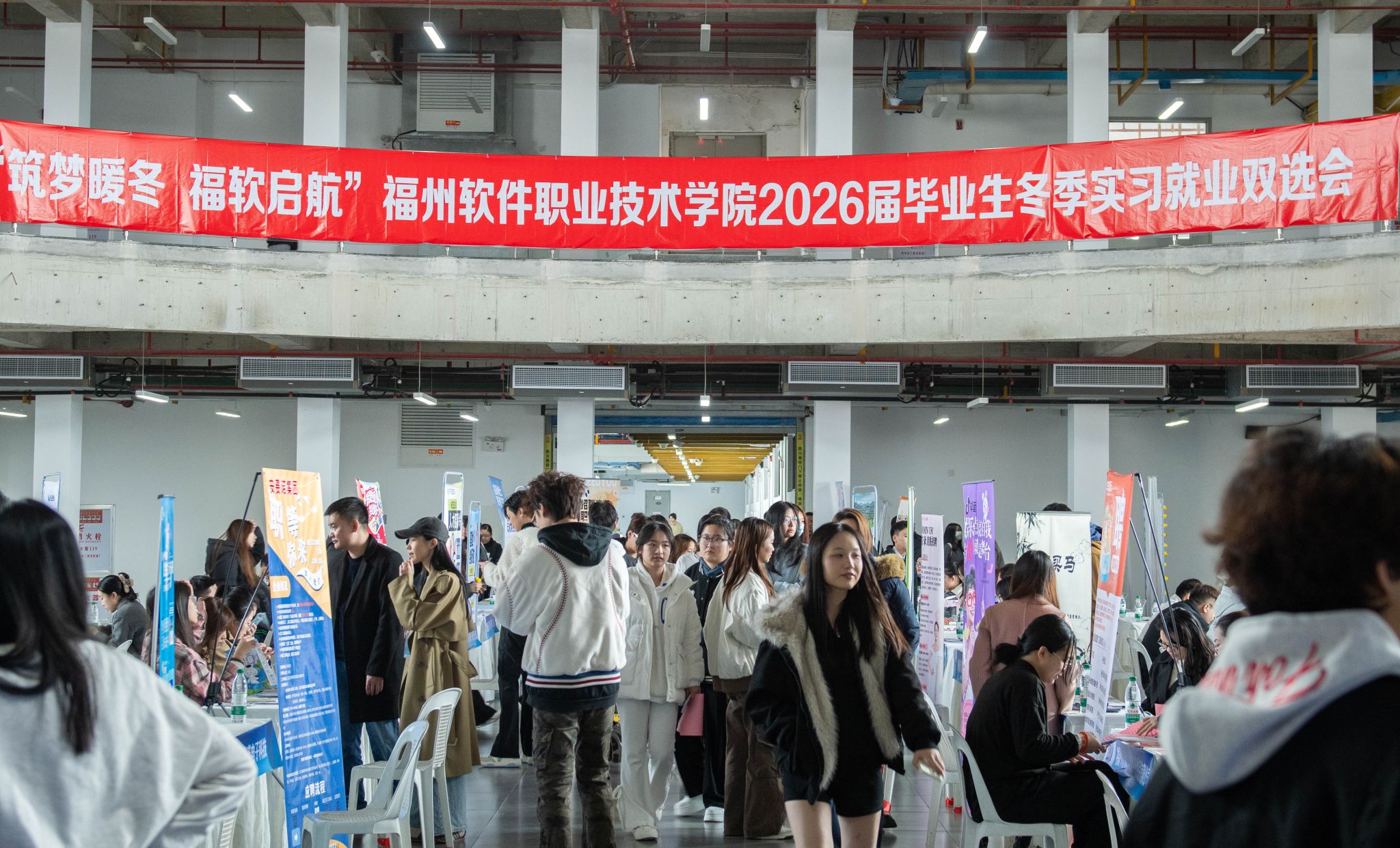 寒冬送暖,职引未来。为搭建优质就业桥梁,助力2026届毕业生精准对接岗位资源,实现实习就业无缝衔接。12月23日“筑梦暖冬,福软启航”福州软件职业技术学院2026届毕业生冬季实习就业双选会在校园内隆重举办。本次双选会聚焦数字经济、软件技术、信息技术服务等核心领域,以“精准匹配、双向赋能”为目标,汇聚众多优质企业与毕业生面对面洽谈,为冬日校园注入满满的求职就业活力。