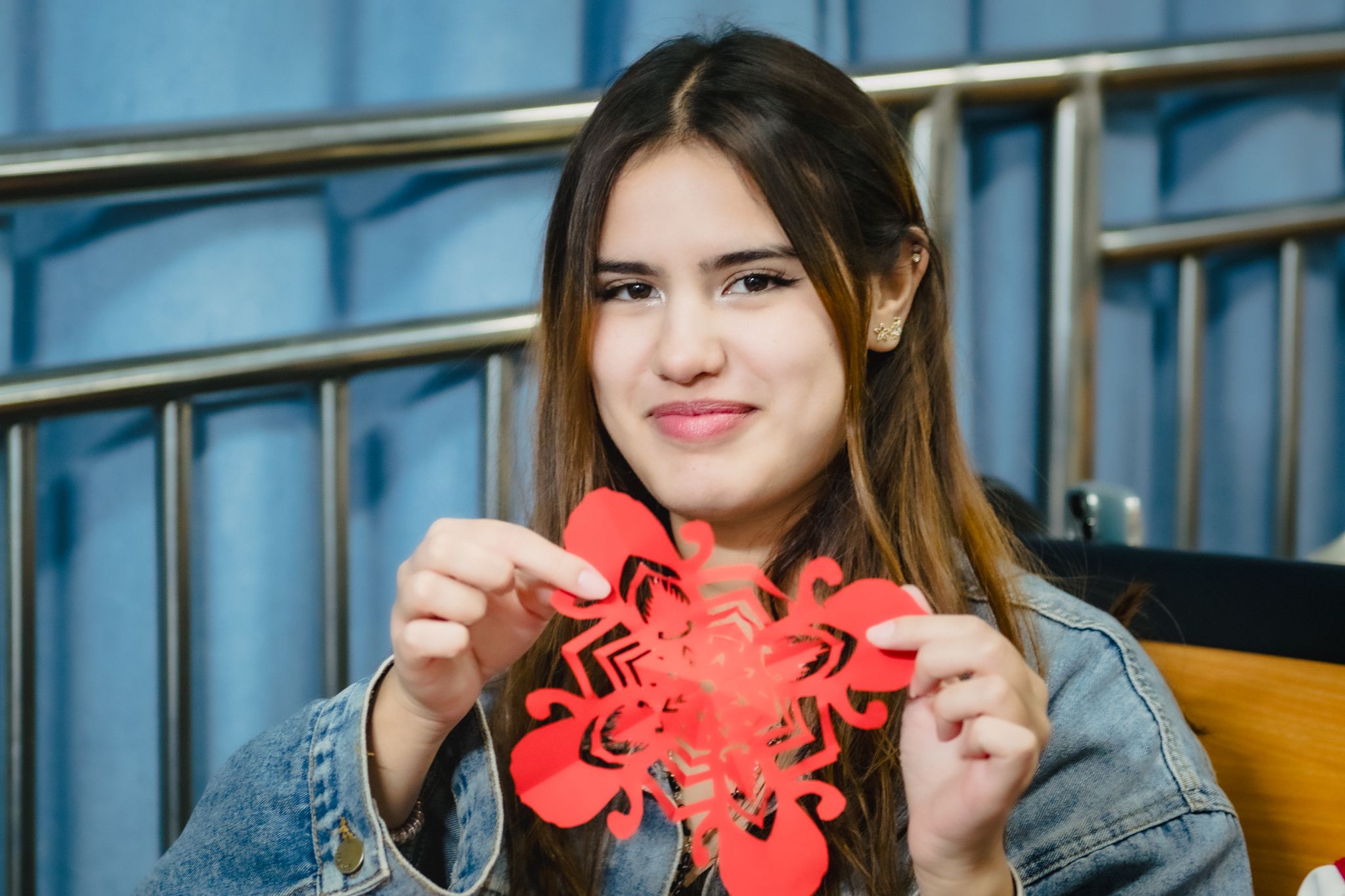 课堂上,学员们热情高涨、专注创作。随着剪刀开合,彩纸渐成对称纹样,作品展开时,大家展露惊喜笑容,相互展示交流,课堂氛围热烈欢快。