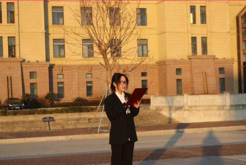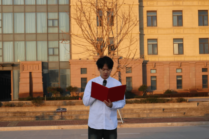 升旗仪式后,陈震同学作为学生代表发言。他以《以青春为序,赴新年之约》为题,与同学们共同回望 2025 年的成长轨迹 —— 专业课上的潜心钻研、图书馆里的默默坚守、运动场上的奋力拼搏、社团活动中的同心协作,都是青春最珍贵的印记。