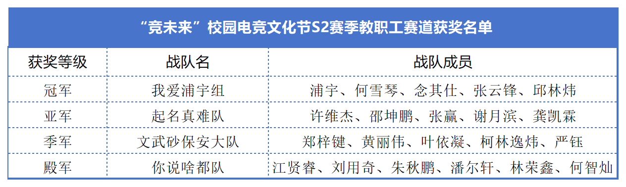 本次比赛竞争激烈,精彩纷呈。教职工组各支队伍均展现了高超的竞技水准与团队风采。经过多轮角逐,“我爱浦宇组”发挥出色,最终夺得冠军。“起名真难队”获得亚军,“文武砂保安大队”和“你说啥都队”分别获得季军和殿军。