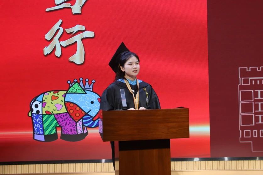 教工党支部书记、教师代表谢惠芳在毕业典礼上深情回顾了同学们在福软求学的珍贵时光,生动践行了“厚德笃行,励学强技”的校训精神。面对新征程,她表示大家要永葆学习热情、要勇于担当挑战要、要保持乐观心态,将个人理想融入国家的发展大局中。