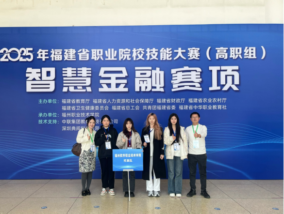4月1日-2日,2023级金融科技应用专业陈莹、颜雅红,2024级金融服务与管理专业郑媛、陈雅芳四位同学(指导教师:陈捷、王婷婷),与全省25支高职院校队伍面对复杂赛题,紧张节奏展开激烈角逐,荣获“智慧金融”赛项团体三等奖。