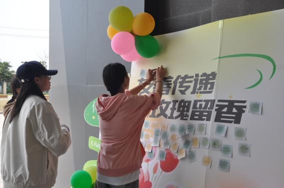 以“玫瑰花园”为背景的留言墙,被精心划分成感恩玫瑰区、心愿玫瑰区、祝福玫瑰区。同学们手持不同颜色的便利贴,写下内心深处的感谢、对未来的期许,或是匿名送给陌生人的祝福。