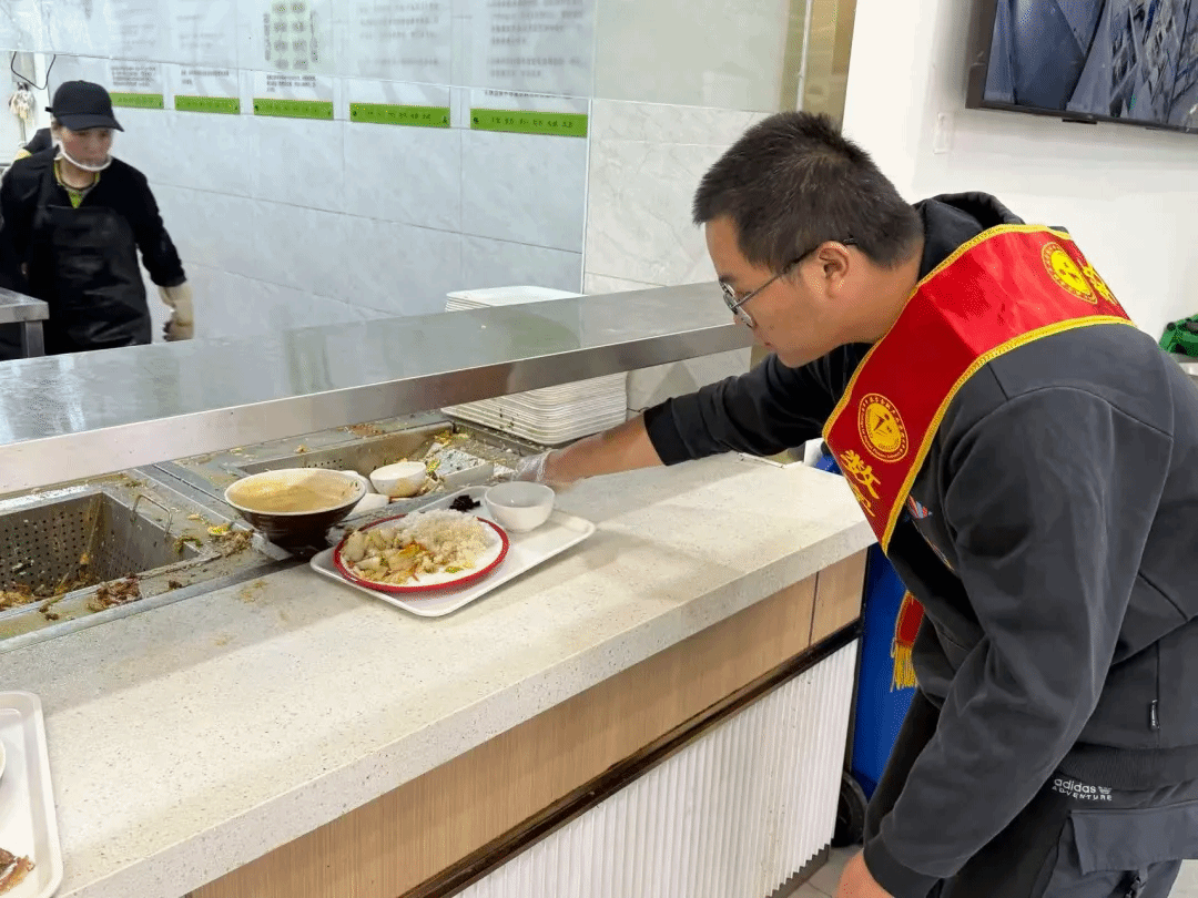 活动中,实践队员恪尽职守,在食堂各个重要区域倡导勤俭节约。餐盘回收点前,他们耐心劝导按需打餐、践行光盘,向剩饭剩菜的同学传递“粒粒皆辛苦”的深刻内涵,以常态化引导的方式让勤俭理念融入日常,推动“节约粮食”从倡议变成习惯。用餐结束时,实践队员们依旧坚守在餐具回收岗位,提醒同学们做好厨余垃圾的分类归置,将餐具整齐摆放到指定区域。他们始终以行动号召珍惜每一粒粮食,落实“光盘行动”,用平凡坚守凝聚起校园餐桌文明的磅礴力量。