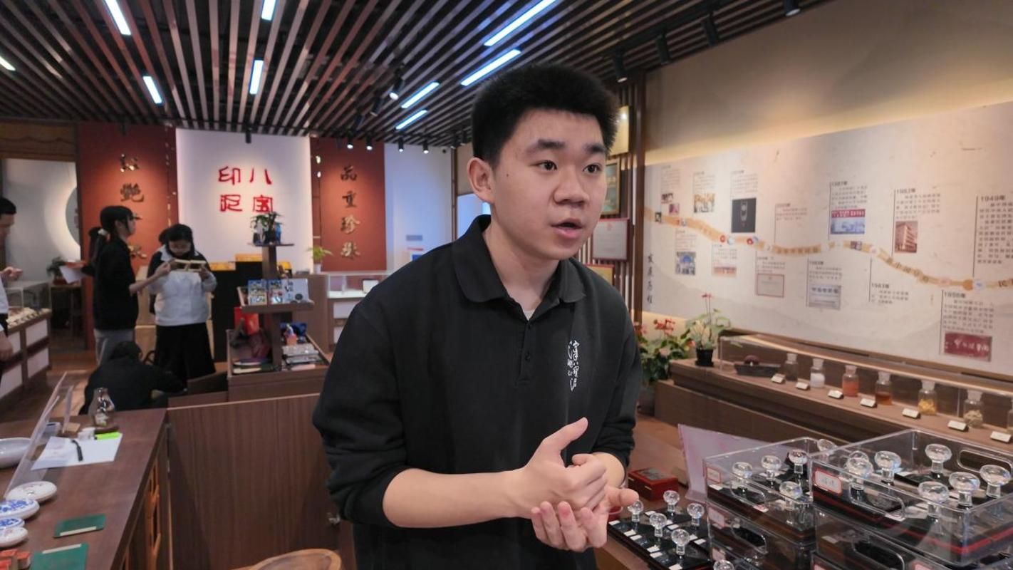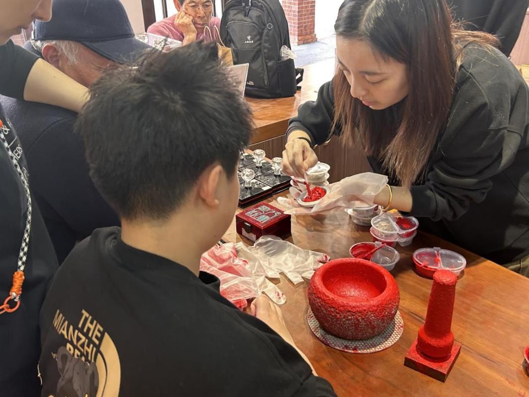 体验后,队员们专访工作人员。据介绍,八宝印泥传承至今已有三百余年,历经数代匠人改良愈发精湛。谈及“漳州三宝”称号由来,工作人员表示,其用料考究、工艺独特,兼具鲜明特质,更承载着漳州人文底蕴,是当地极具代表性的文化符号。